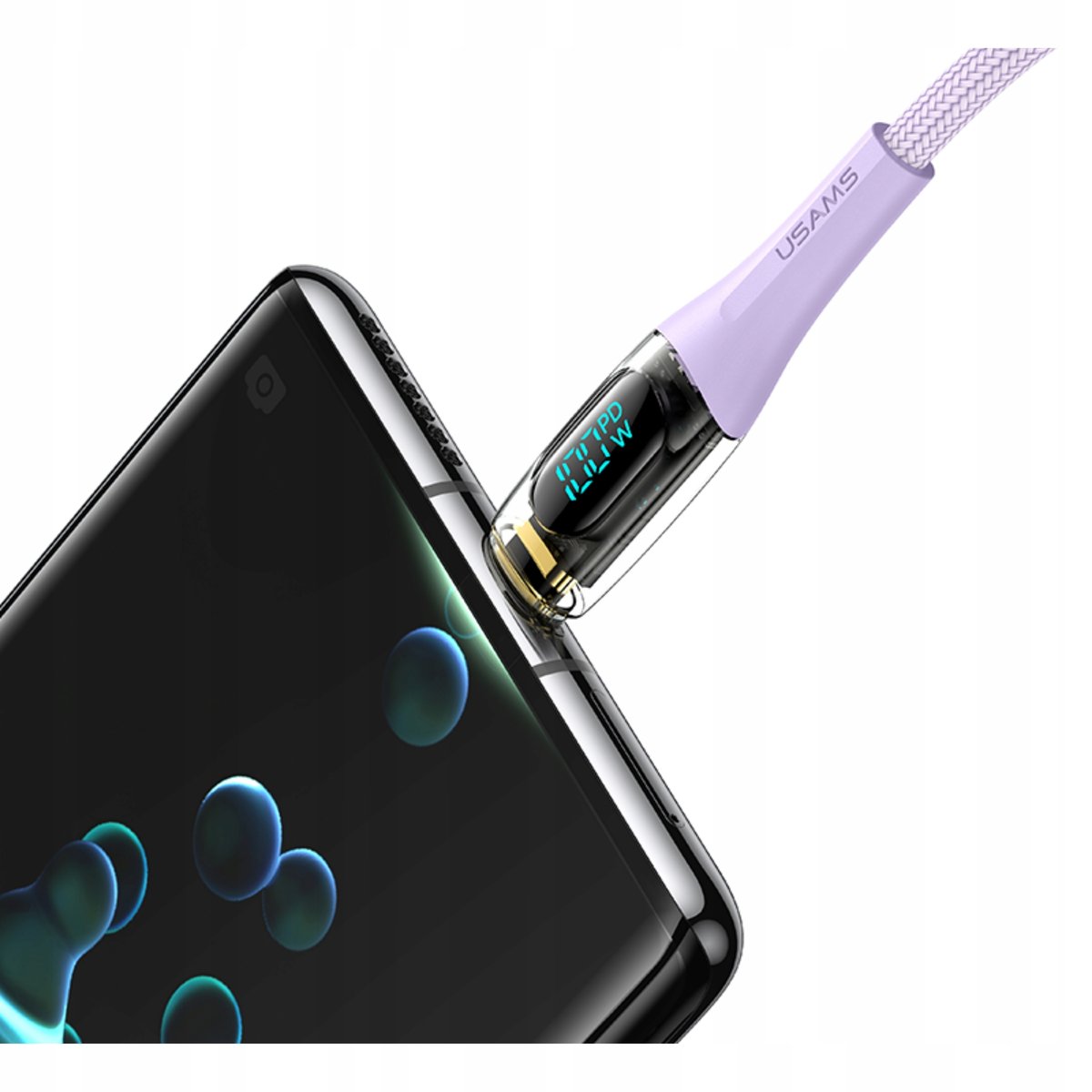Przedstawiamy Państwu kabel US-SJ590 typu C oraz typu C PD 100W Transparent Digital Display z serii Shadow. Ten profesjonalnie zaprojektowany kabel o długości 1,2 m jest idealnym rozwiązaniem do szybkiego i bezpiecznego przesyłania danych oraz ładowania urządzeń z portem typu C. Purpurowy