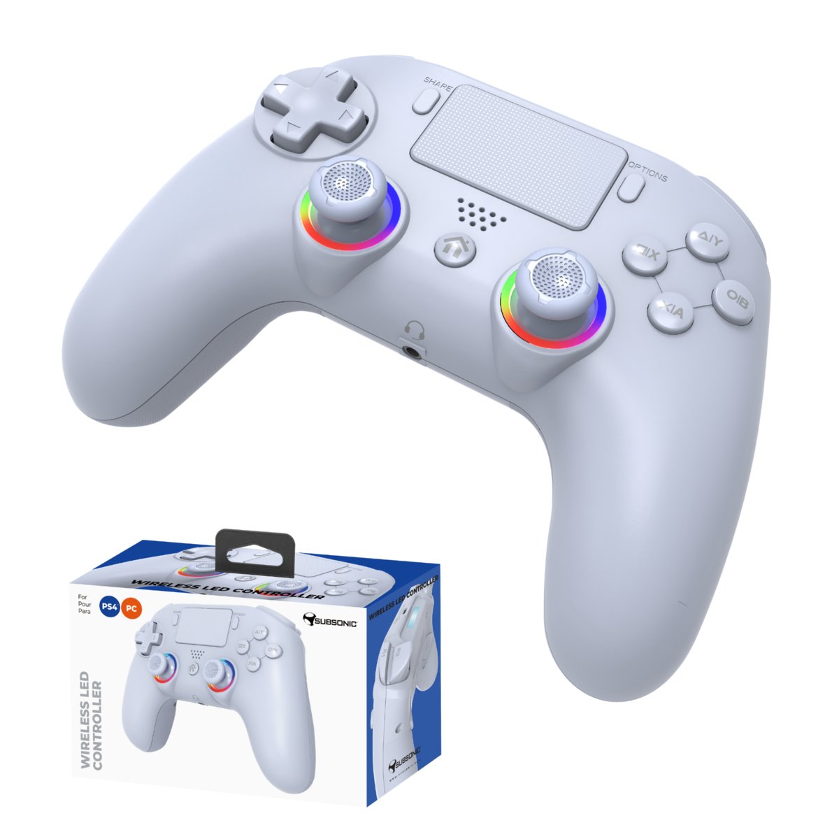 Bezprzewodowy pad PS4 i PC biały LED SUBSONIC Najważniejsze Cechy Produktu Bezprzewodowe połączenie