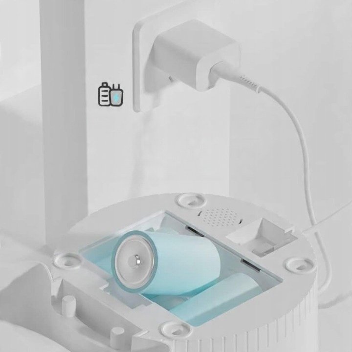 Urządzenie wyposażono w podwójne zasilanie – działa zarówno z sieci (przez kabel USB), jak i z trzech baterii typu D (brak w zestawie) jako zasilanie awaryjne. Dodatkowym zabezpieczeniem jest przycisk blokady, zapobiegający przypadkowemu uruchomieniu, np. przez dziecko lub zwierzę.