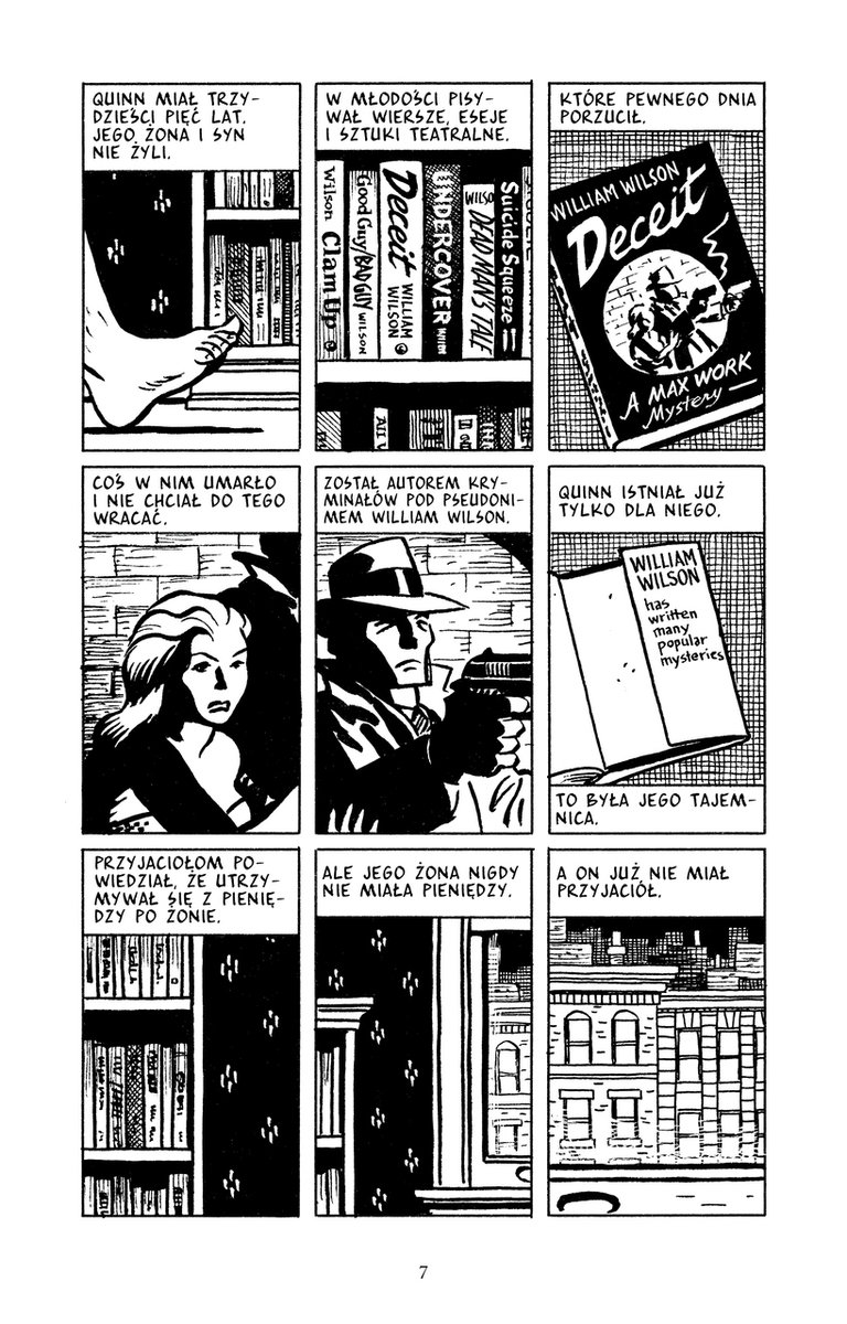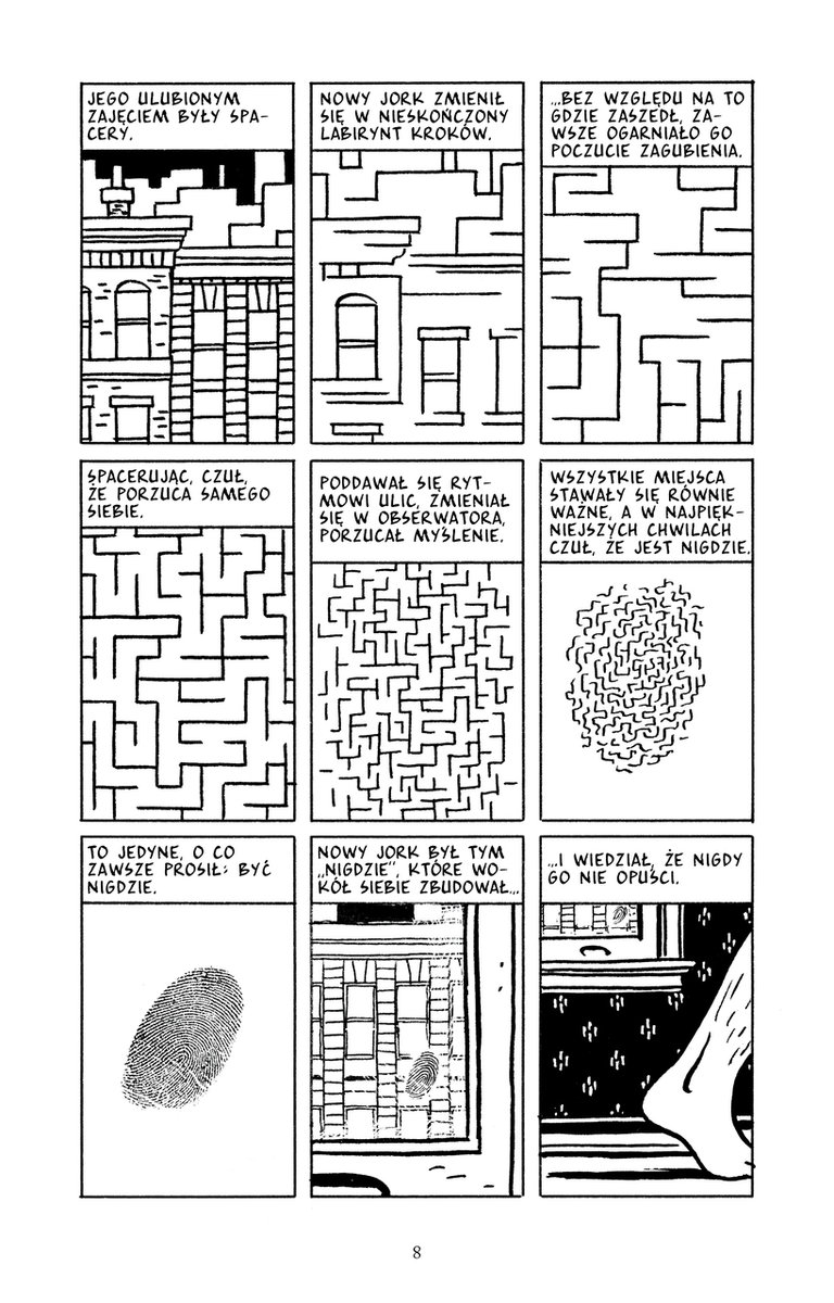 Klasyczne dzieło Paula Austera w nowej odsłonie! Szklane miasto, Duchy i Zamknięty pokój – trzy opowieści o samotności, zagubieniu i poszukiwaniu tożsamości, przełożone na język komiksu przez wybitnych artystów: Davida Mazzucchelliego, Lorenzo Mattottiego i Paula Karasika. Mroczna, wciągająca podróż po labiryncie Nowego Jorku, w której czarny kryminał spotyka egzystencjalny dramat.