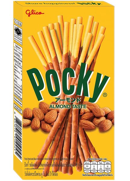 Pocky Almond Taste to przepyszna, podwójnie migdałowa odsłona deserowych patyczków. Idealnie kruche paluszki oblane jedwabistym kremem o smaku orzechów i karmelu z dodatkiem pokruszonych migdałów rozpieszczą zmysły, jak nigdy dotąd! Same w sobie smakują wspaniale, a jeszcze lepiej w towarzystwie kawy, mleka lub herbaty. Mają bardzo poręczną formę - łatwe do otwarcia opakowanie, które zachęca do dzielenia się z innymi oraz wyjątkową dla Pocky "rączkę", czyli małą część patyczka u spodu, która nie jest pokryta polewą.