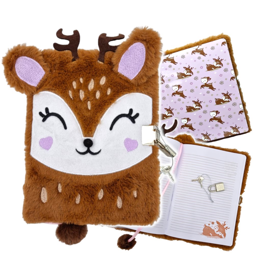 🦌 🌸 Pamiętnik na kłódkę i kluczyk idealny dla każdej dziewczynki do zapisywania dziecięcych sekretów. Pluszowy jelonek z odstającym porożem wykonany z największą starannością o szczegóły. W środku ...