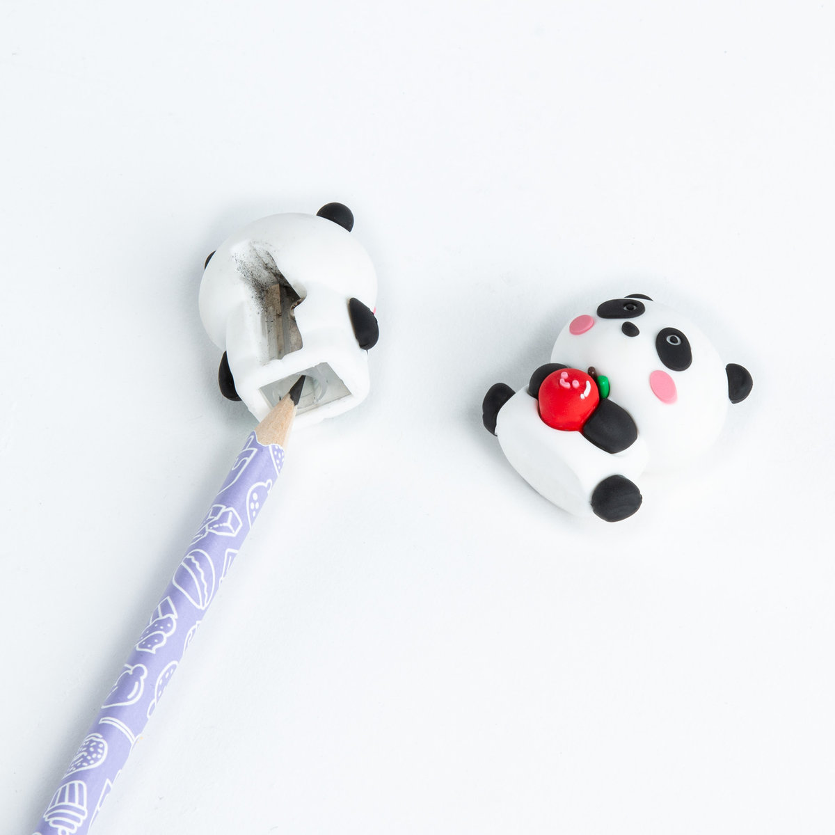 Urocze akcesoria szkolne z pandą. Zestaw zawiera gumkę do ścierania i temperówkę, które wyglądają jak słodkie pandy. Gumka doskonale poradzi sobie z każdym błędem, a temperówka zadba, by każdy ołówek
