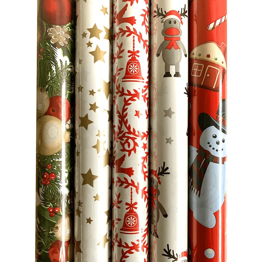 papier ozdobny gwiazdkowy do pakowania prezentów jednostronnie powlekany LWC 55g/m2 rozmiar (cm) 200 x 70 Made in EU wiele wzorów, wysyłka losowa