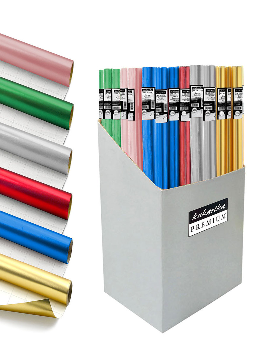 Papier ozdobny premium całoroczny - metaliczny PO-012 Papier z metalizowaną folią do pakowania prezentów, z dodatkowymi liniami (kratką) po wewnętrznej stronie, ułatwiającymi precyzyjne cięcie. ...