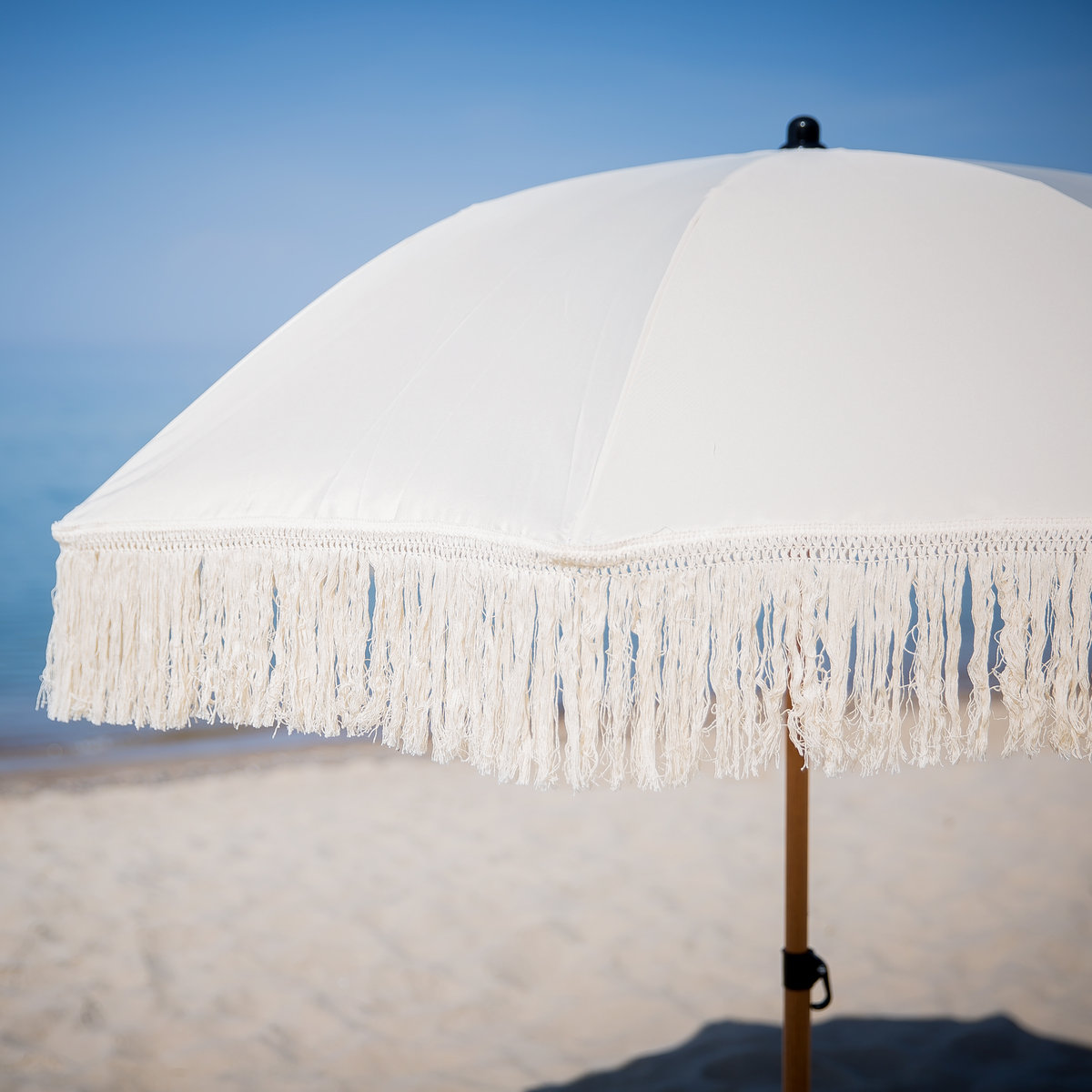 Idealnie sprawdzi się na tarasie, balkonie lub ogrodzie. Piękny i niepowtarzalny. Bawełniane frędzle dodają uroku i sprawiają, że każdy gość będzie zachwycony wyglądem parasola ogrodowego. Dwuczęściowy stelaż wykonany został z aluminiowych rurek (28/32 mm) imitujących drewno. Do 8-ramiennej stalowej czaszy przymocowane jest poszycie z poliestru, które jest łatwe w utrzymaniu czystości. Wystarczy przetrzeć wilgotną szmatką.