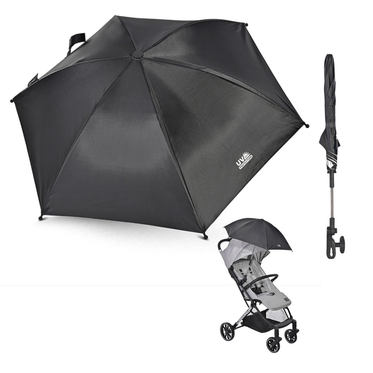 ✔️Duża średnica parasolki 68 cm wystarczy, żeby osłonić spacerówkę i jej pasażera przed prażącym słońcem bądź przelotnym deszczem.