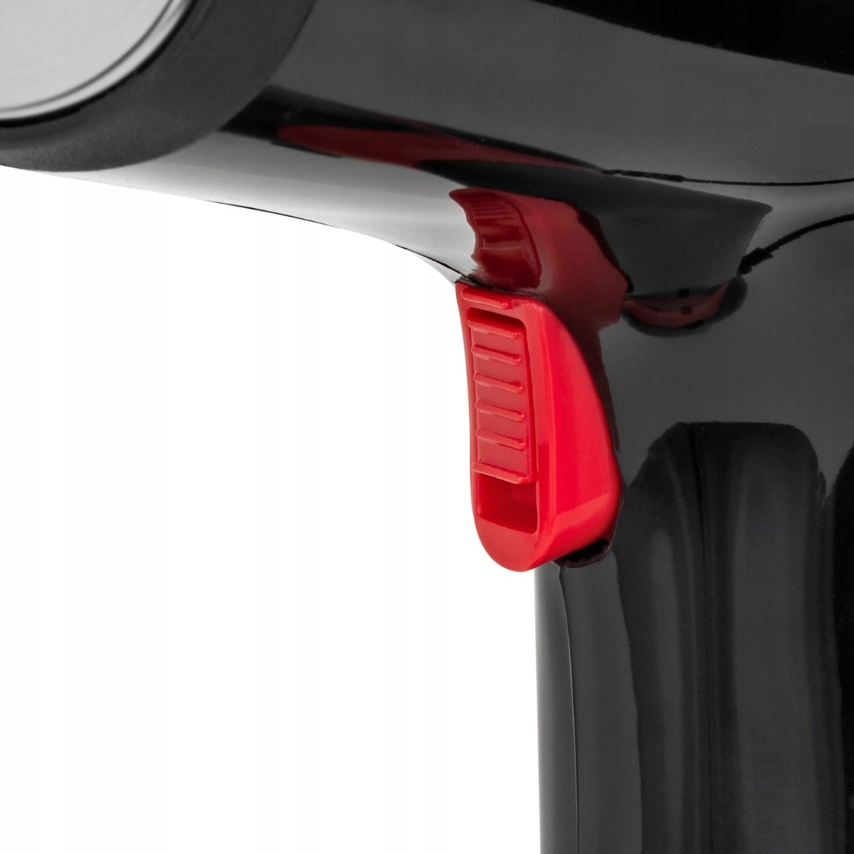 Przycisk uruchamiający parę posiada blokadę, która pozwala na użytkowanie parownicy bez konieczności stałego trzymania włącznika.