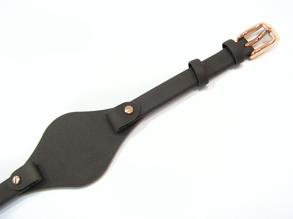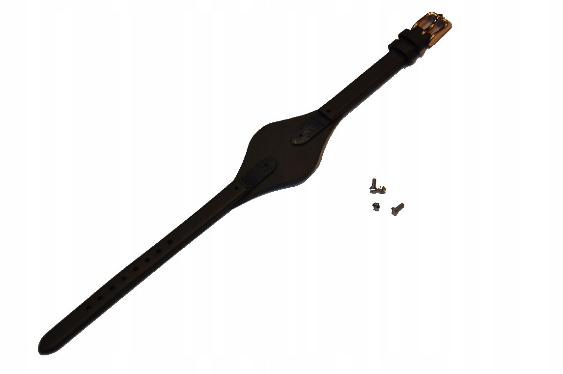 W zestawie oryginalne wkręty do zamocowania paska w kolorze różowego złota.