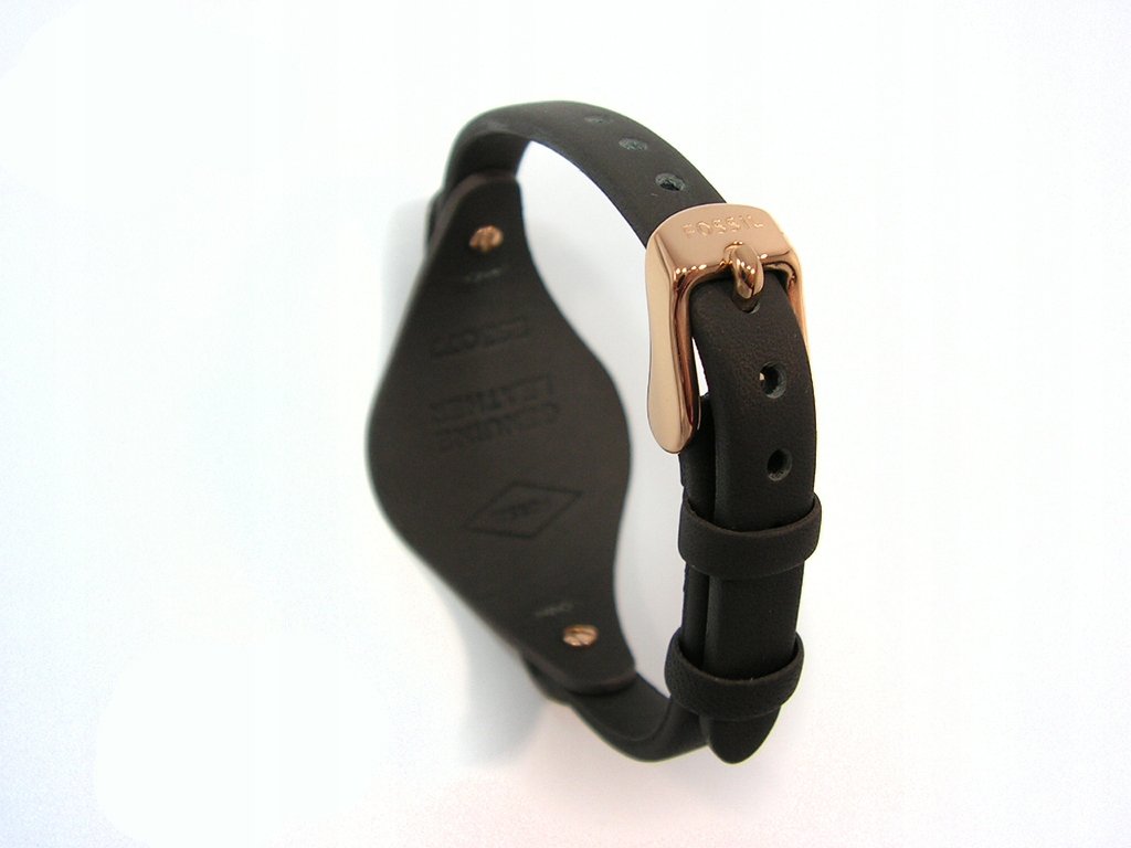 Oryginalny pasek do zegarka marki Fossil do modelu ES3077, wykonany ze skóry naturalnej w kolorze ciemny brąz, z podkładką, gładki, matowy, sprzączka wykonana ze stali nierdzewnej w kolorze różowego złota.