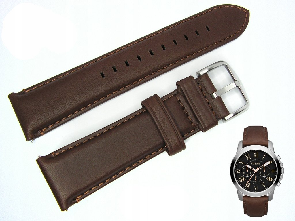 Oryginalny pasek do zegarka marki Fossil Grant do modelu FS4813, wykonany ze skóry naturalnej w kolorze brązowym, przeszyty, gładki, matowy, sprzączka wykonana ze stali nierdzewnej w kolorze srebrnym.