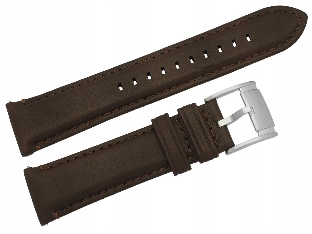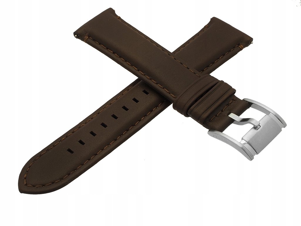 Oryginalny pasek do zegarka marki Fossil ME3061, wykonany ze skóry naturalnej w kolorze brązowym, przeszyty, gładki, sprzączka wykonana ze stali nierdzewnej w kolorze srebrnym.