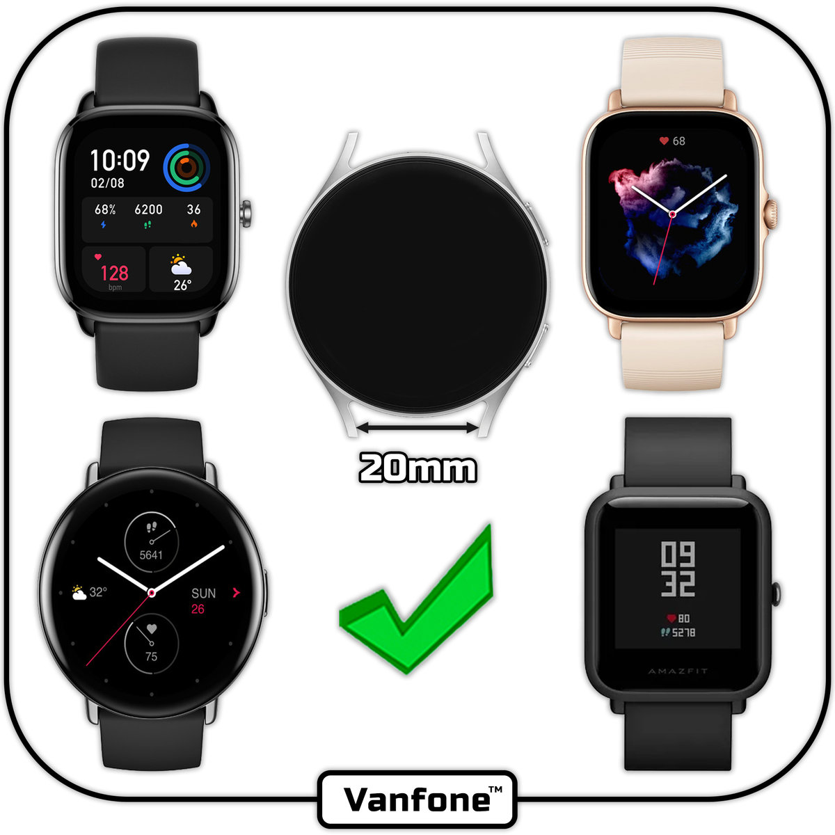 ⌚Pasek silikonowy Vanfone do smartwatchy z mocowaniem o szerokości 20mm⭐⭐⭐⭐⭐