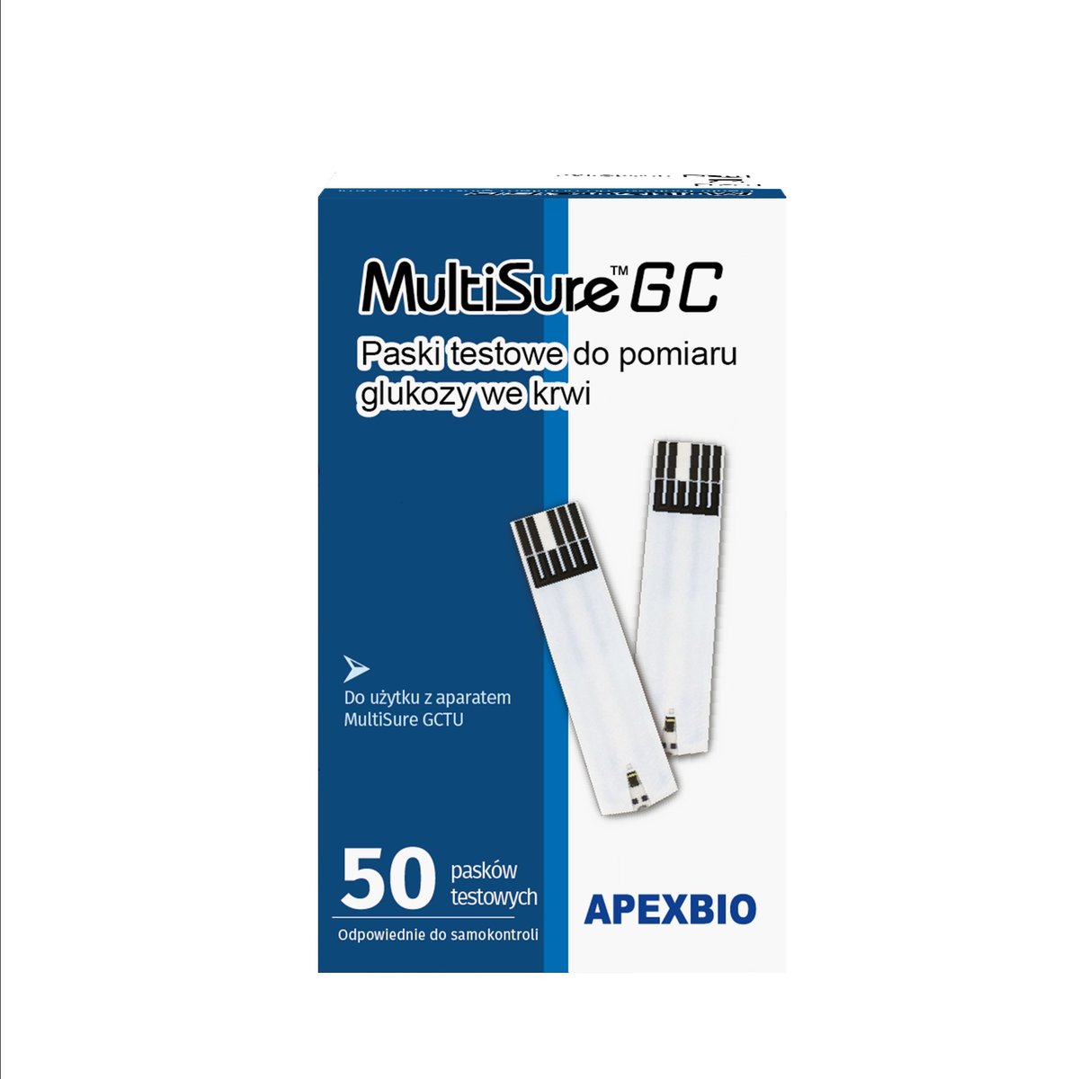 Paski testowe do pomiaru glukozy we krwi MultiSure GC przeznaczone są do ilościowego pomiaru poziomu glukozy w pełnej krwi włośniczkowej pobranej z opuszki palca, dłoni lub przedramienia, przy użyciu aparatu MultiSure GCTU. Paski testowe MultiSure GC są skalibrowane względem osocza, co umożliwia łatwe porównanie wyników z wynikami laboratoryjnymi. Przeznaczone są do samodzielnego testowania przez osoby chore na cukrzycę oraz do użytku przez personel medyczny. Nie są przeznaczone do diagnozowania, przesiewowego wykrywania cukrzycy, ani do stosowania u noworodków.