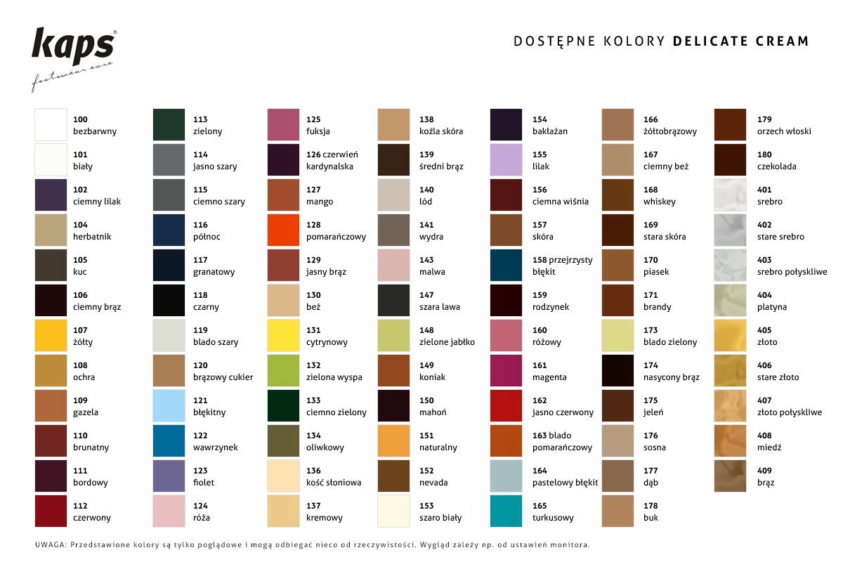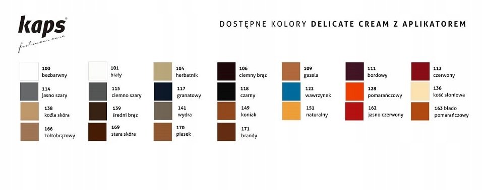 DELICATE CREAM KAPS z aplikatorem> Pasta do obuwia na bazie naturalnych wosków - pszczelego i carnauba.> Odświeża kolor, czyści, pielęgnuje i odżywia skórę, uzupełnia drobne zarysowania oraz ...