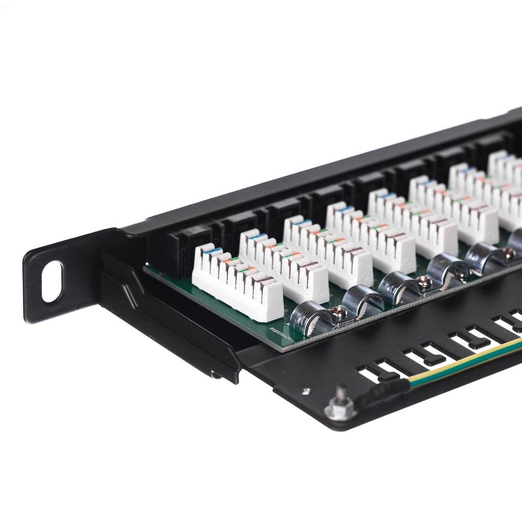 Patch panel 19" UTP, kat. 6, 0,5U z półką stałą