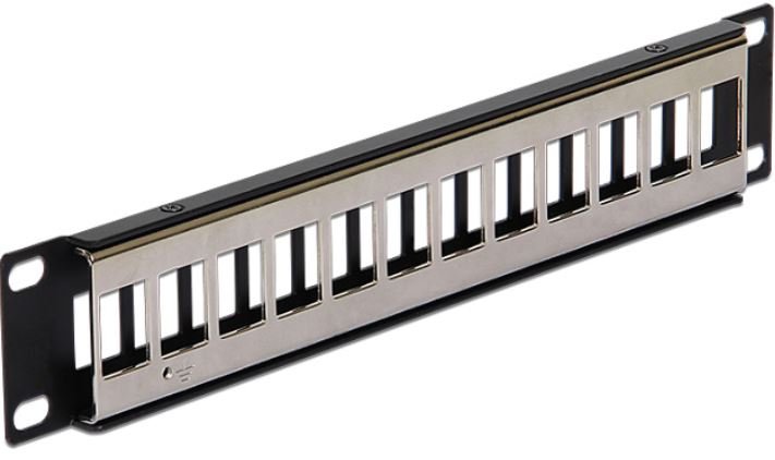 Ten Panel Patch Delock można zamontować w szafie 10", 1 U. Dzięki znormalizowanym wymiarom nadaje się do łatwego mocowania dwunastu modułów Keystone.