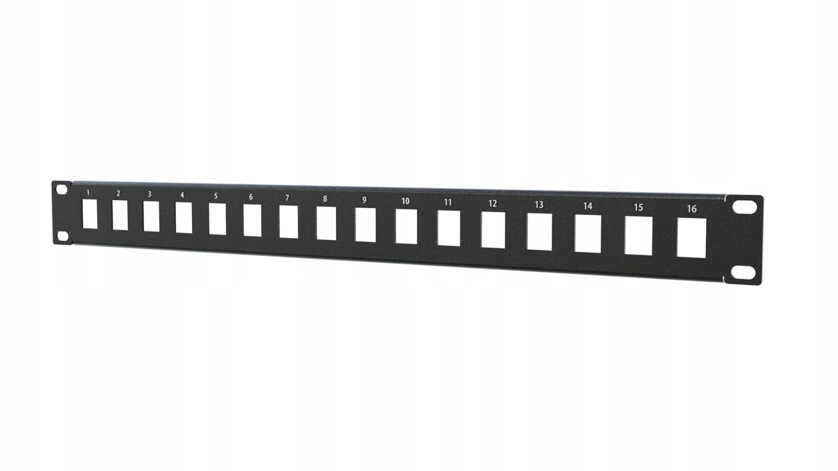 Patch Panel RACK Standard 19" 1U z 16 miejscami na moduły Keystone jest przeznaczony do efektywnego zarządzania okablowaniem w szafach rackowych 19 cali.