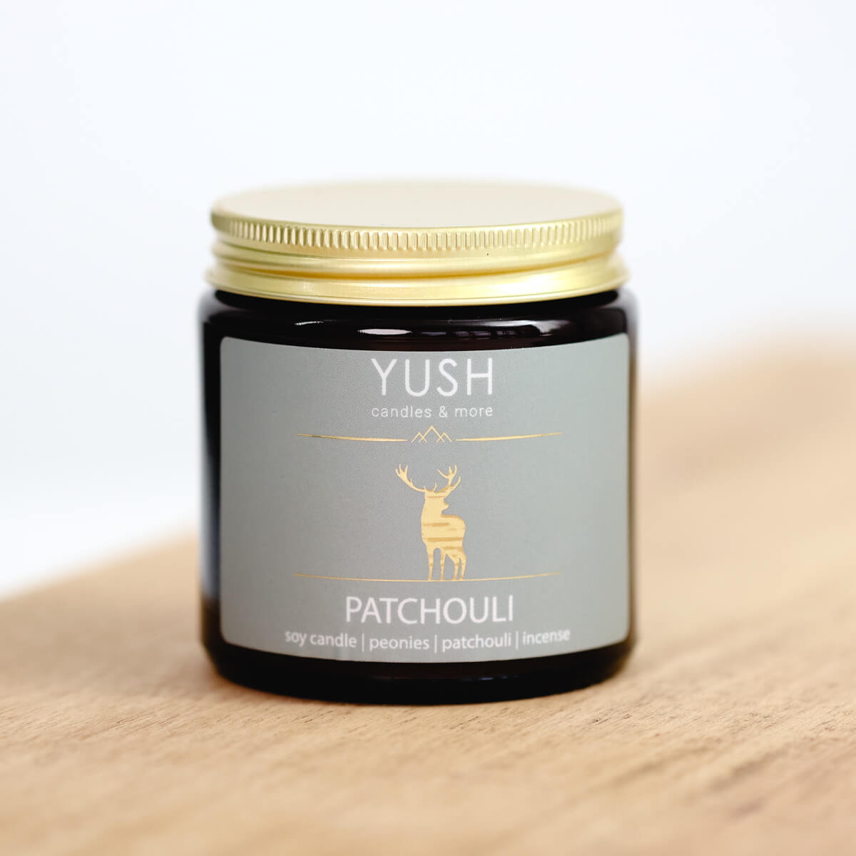 Patchouli - Świeca Sojowa YUSH - świece sojoweWosk sojowy 100% naturalny i ekologicznyCzas palenia: ok. 25 godzinPojemność: 120mlNuty zapachowe: peonii, paczuli, kadzidła, ...