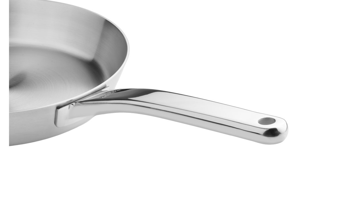 Patelnia stalowa Prestige wykonana jest z najwyższej jakości stali nierdzewnej 18/10. To solidne naczynie, które jest odporne na zadrapania oraz uszkodzenia. Patelnia wyprodukowana została z materiałów najwyższej jakości, gwarantujących bezpieczeństwo dla zdrowia, nawet podczas smażenia w wysokiej temperaturze. Ponadto, konstrukcja stalowa patelni umożliwia mycie naczynia w zmywarce.