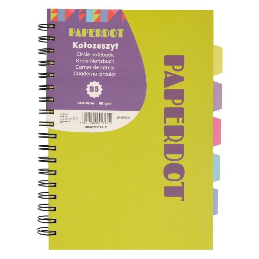 | Nazwa: | Paperdot, Kołozeszyt, B5, 120 kartek, Żółty |