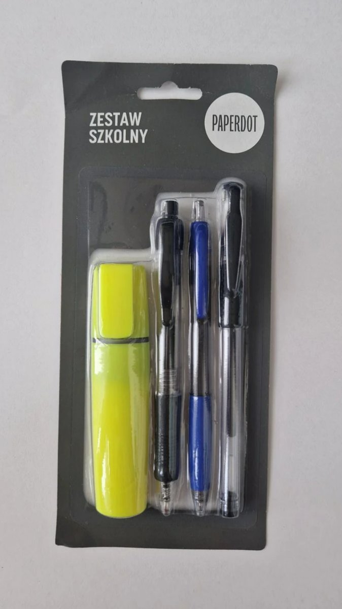 | Nazwa: | Paperdot, Zestaw szkolny 3 długopisy + zakreślacz |