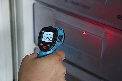 Ten termometr jest wyposażony w laserowy wskaźnik, który ułatwia precyzyjne namierzenie miejsca pomiaru. Dzięki temu możesz dokładnie określić, na jakiej powierzchni chcesz zmierzyć temperaturę.