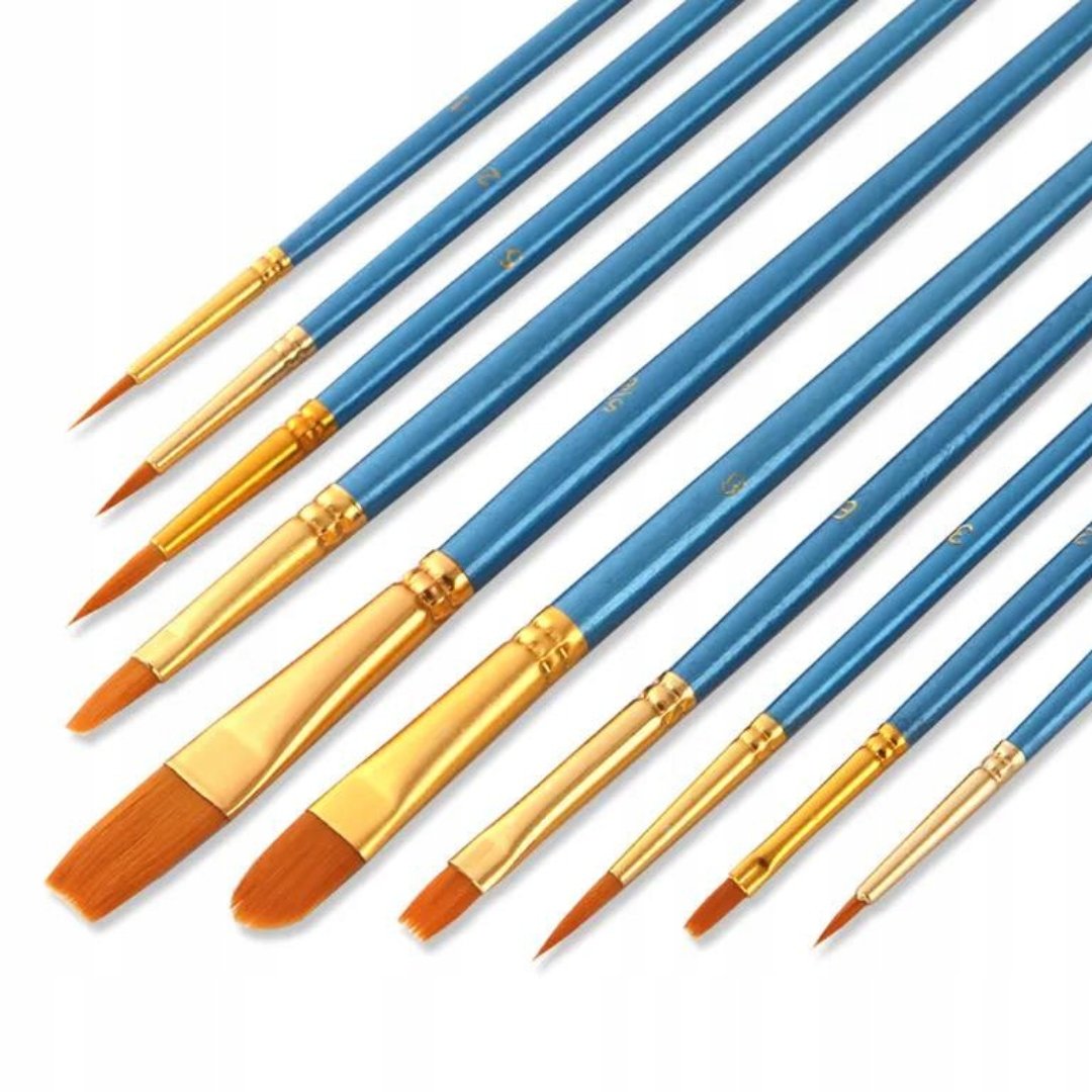 ZESTAW 10 PROFESJONALNYCH PĘDZLI MALARSKICH