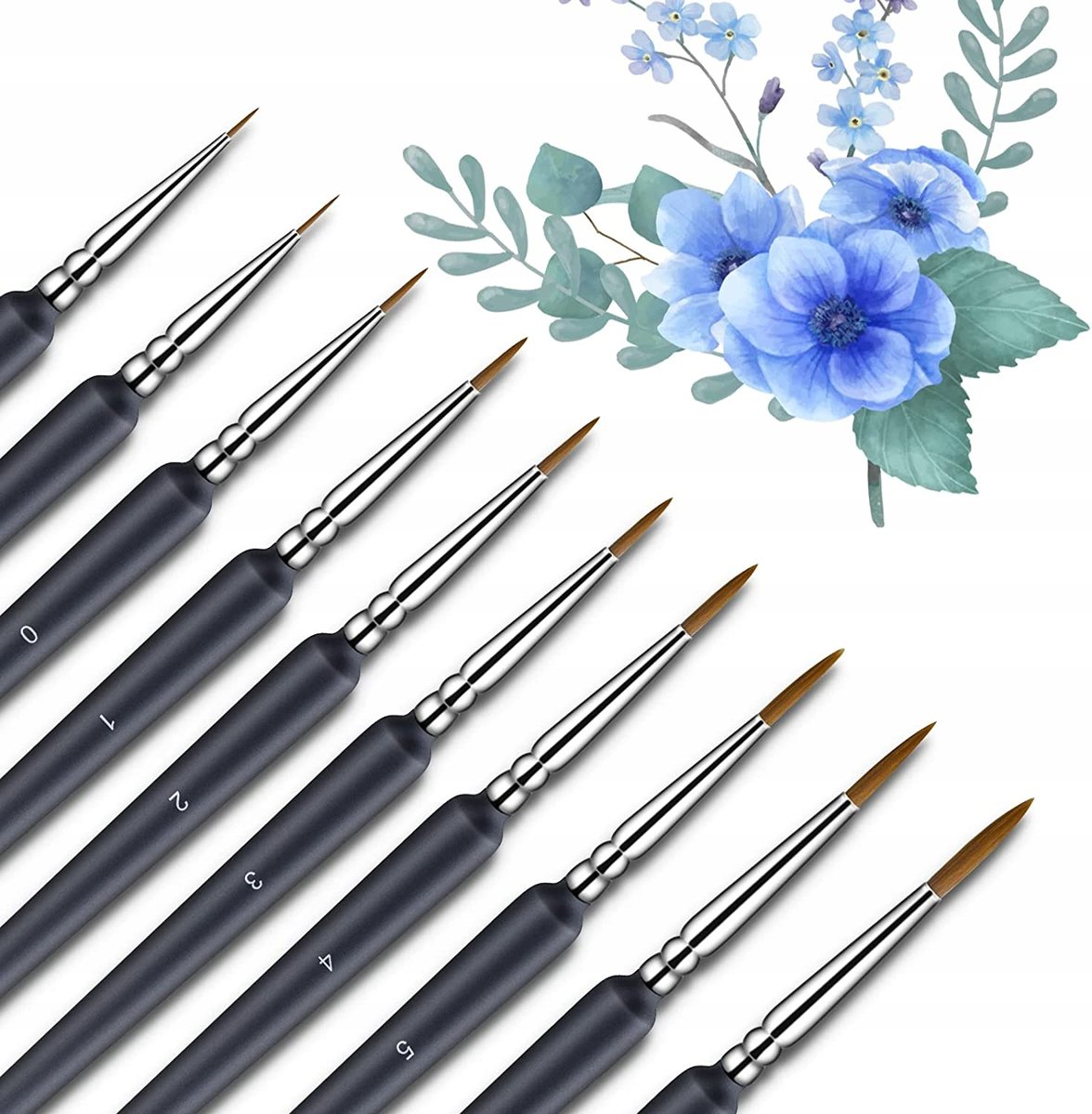 10 pędzli do detali w rozmiarze 000, 00, 0, 1, 2, 3, 4, 5, 6, 7