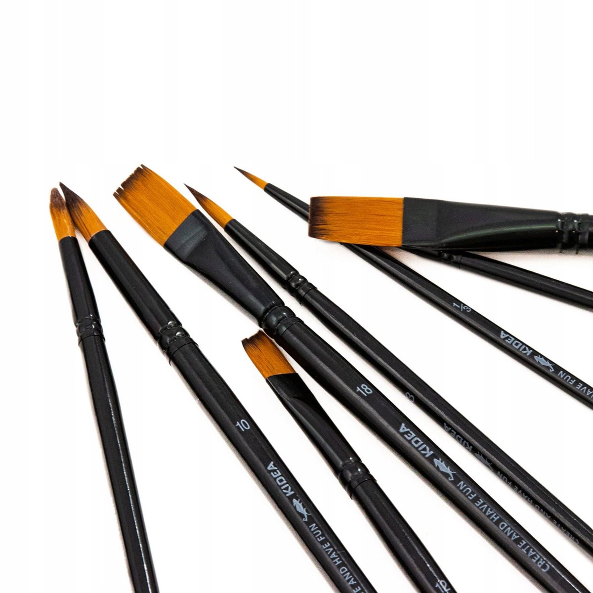 - 5 pędzli okrągłych – do detali, konturów i cienkich linii