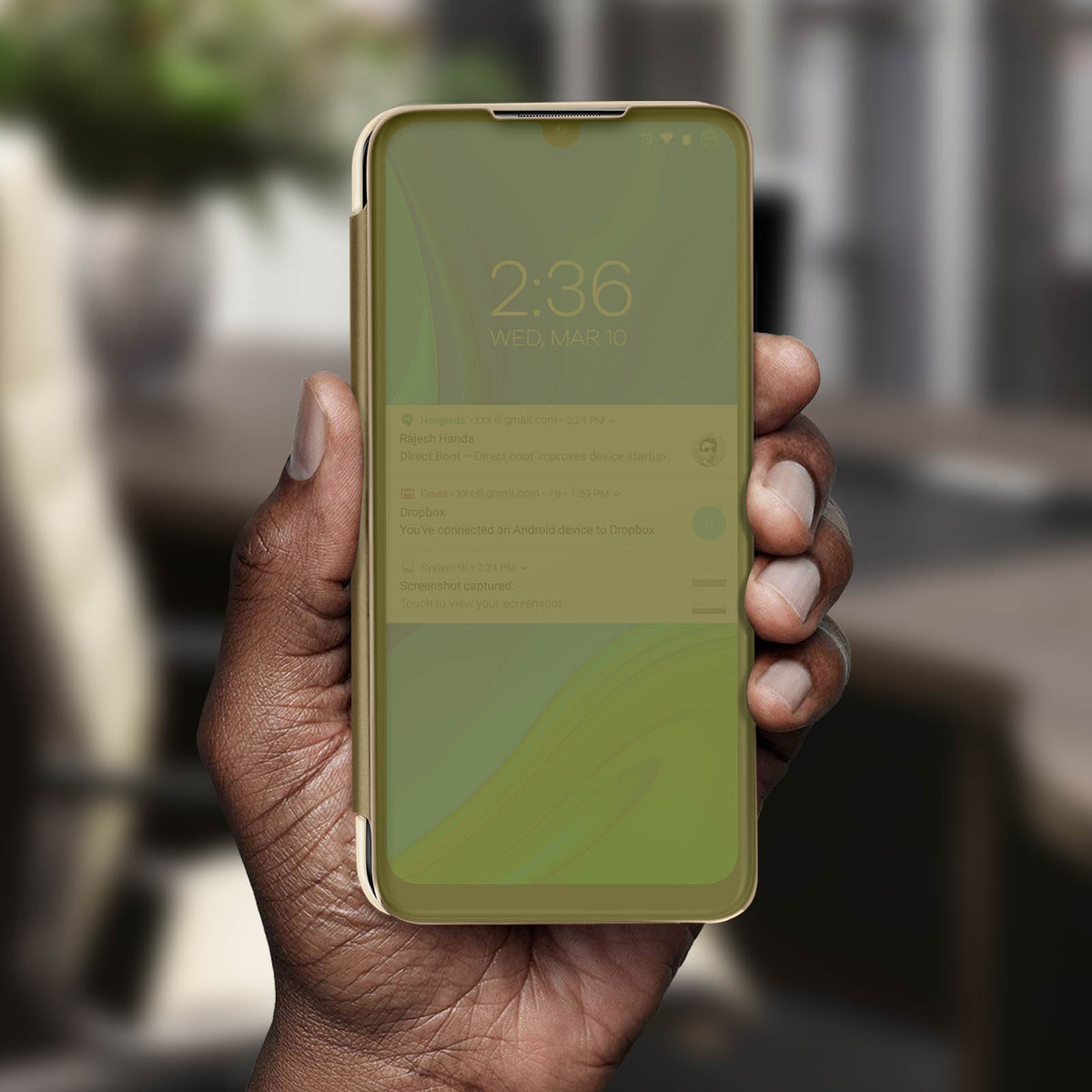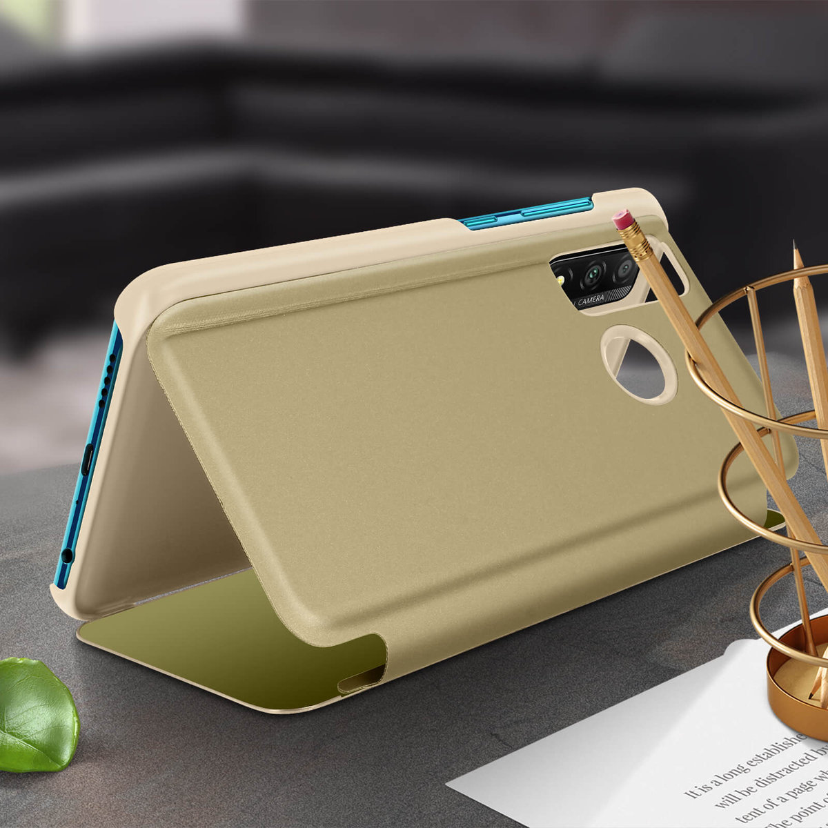 Etui na telefon Huawei P smart 2020 z efektem lustrzanego odbicia. Przezroczysta zakładka, aby zobaczyć powiadomienia, gdy ekran włączy się i zamieni się w lustro w trybie gotowości. Pełna funkcja ochrony i wsparcia.