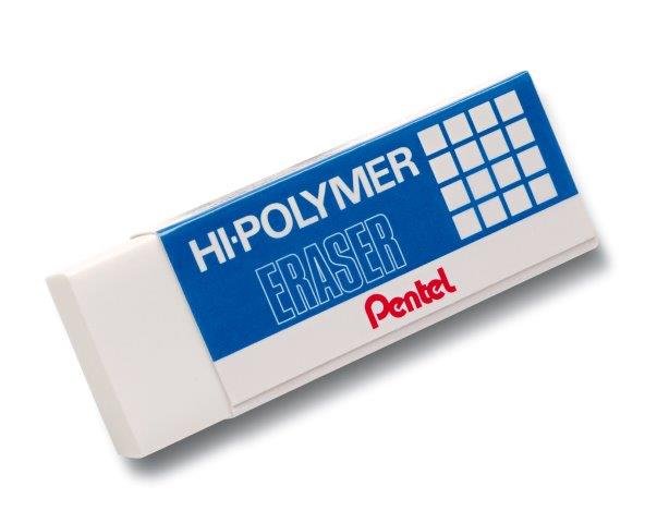 Bardzo popularna na całym świecie gumka ołówkowa Hi-Polymer. Wyjątkowo giętka i miękka, działa bez potrzeby mocnego dociskania do powierzchni. Nie narusza struktury papieru, pozostawia zeszyty,