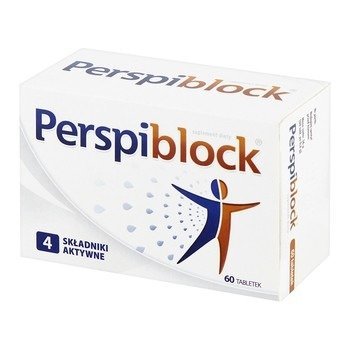 Perspiblock - 60 tabletek Suplement diety dla osób, które zmagają się z problemem nadmiernej potliwości. Zawiera naturalne składniki, takie jak: szałwia lekarska, skrzyp polny, pokrzywa i melisa. ...
