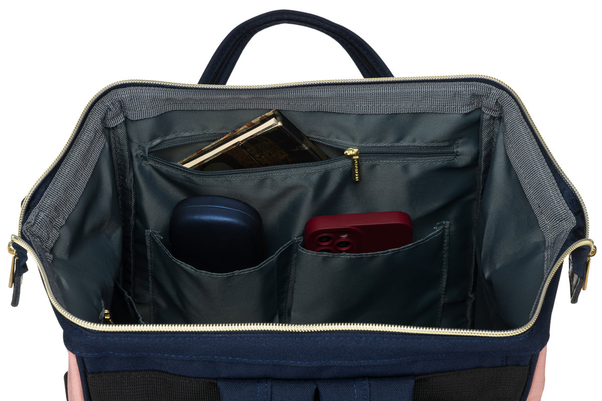Jednokomorowy plecak zapinany na suwak od góry, z praktycznym układem kieszeni: 7 kieszeni wewnątrz i 3 zewnętrznymi.