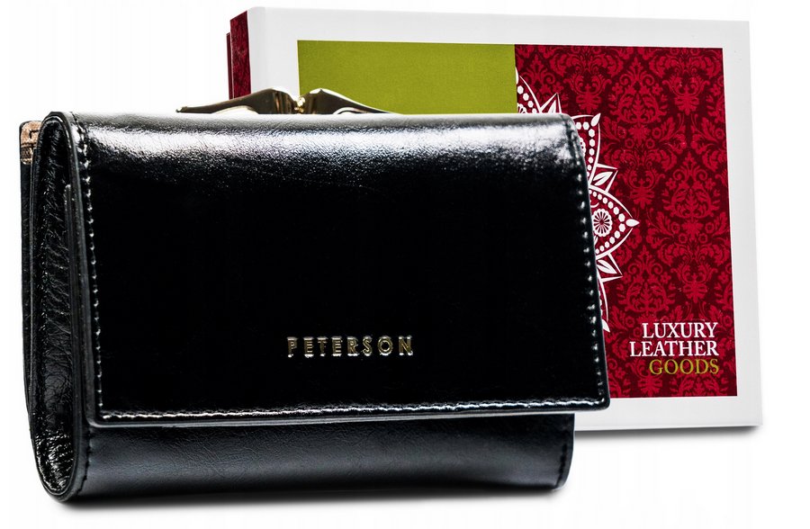 | Nazwa: | Damski skórzany portfel Peterson na zatrzask pojemna elegancka portmonetka na karty i gotówkę, czarny |