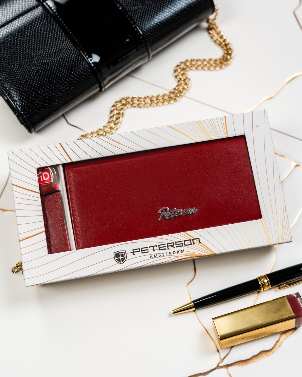 Portfel damski skórzany PETERSON zestaw z breloczkiem portmonetka pojemna RFID