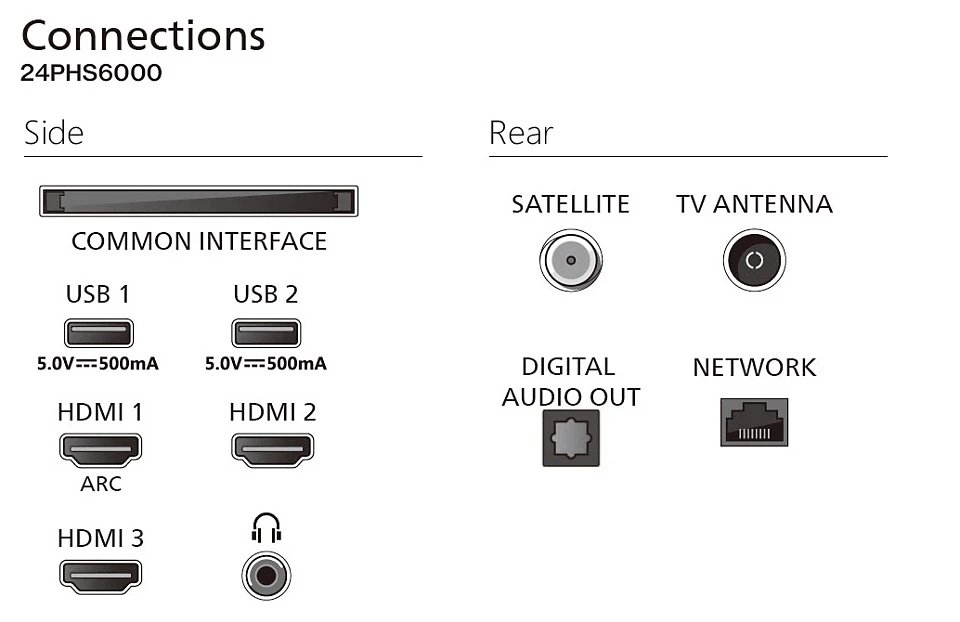 Z telewizorem 24PHS6000/12 łatwo połączysz się z innymi urządzeniami dzięki złączu HDMI oraz portom USB. Bezprzewodowe połączenie LAN Wi-Fi umożliwia szybkie łączenie z siecią, co jest niezbędne do korzystania z funkcji Smart TV. Telewizor wyposażony jest także w tuner DVB-T/T2/T2-HD/C/S/S2, co zapewnia dostęp do bogatej oferty kanałów telewizyjnych w wysokiej jakości.
