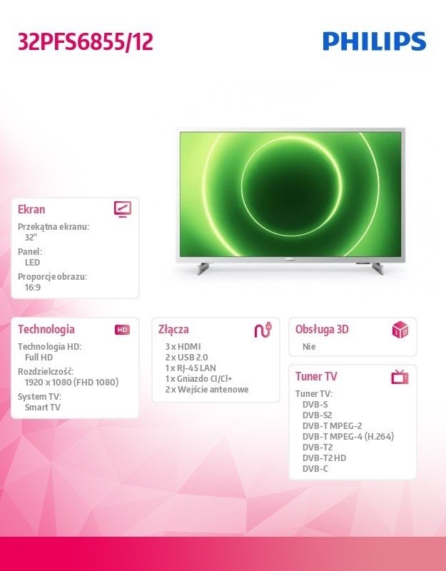 | Nazwa: | Philips Telewizor LED 32 cale 32PFS6855/12 SMART |
