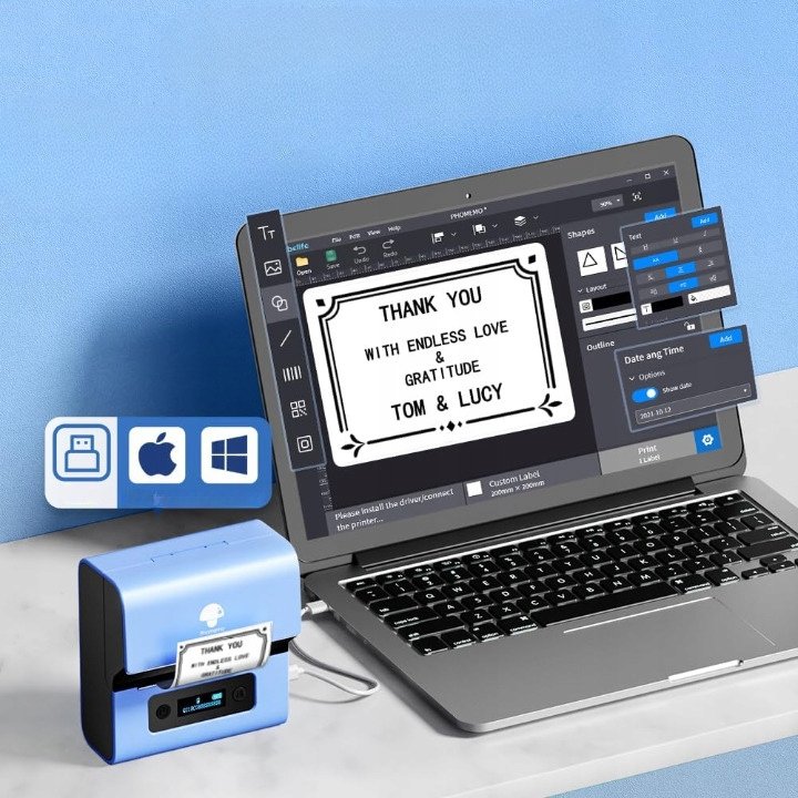 A: Oczywiście drukarka posiada bogatą bibliotekę wbudowanych grafik, ale także umożliwia dodawanie własnych zdjęć/grafik dzięki czemu pozwala na jeszcze większe personalizowanie swoich wydruków.
