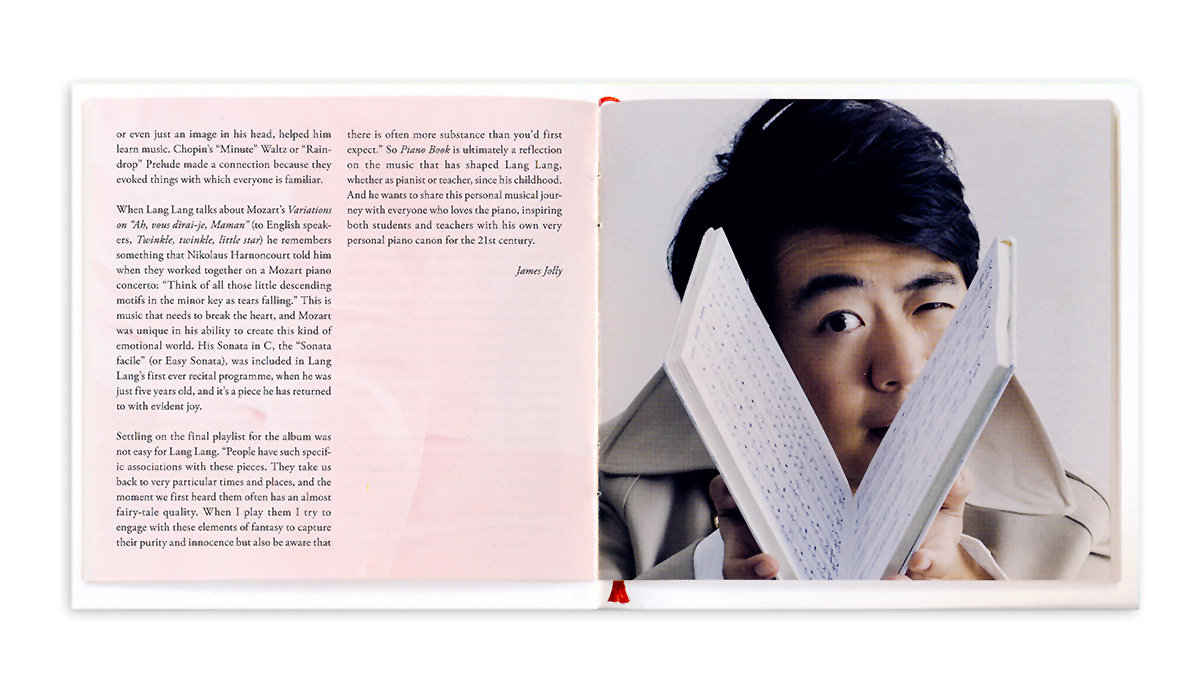 Studyjny album Lang Langa. Na „Piano Book” artysta powraca do swojej pierwszej miłości – utworów na fortepian, które sprawiły, że postanowił zostać muzykiem. Prezentuje najpopularniejsze dzieła stworzone z myślą o uczących się grać na fortepianie i kochających ten instrument, takie jak m.in. „Dla Elizy” Beethovena, ”Clair De Lune” Debussy’ego czy „Preludium C-dur” Bacha.