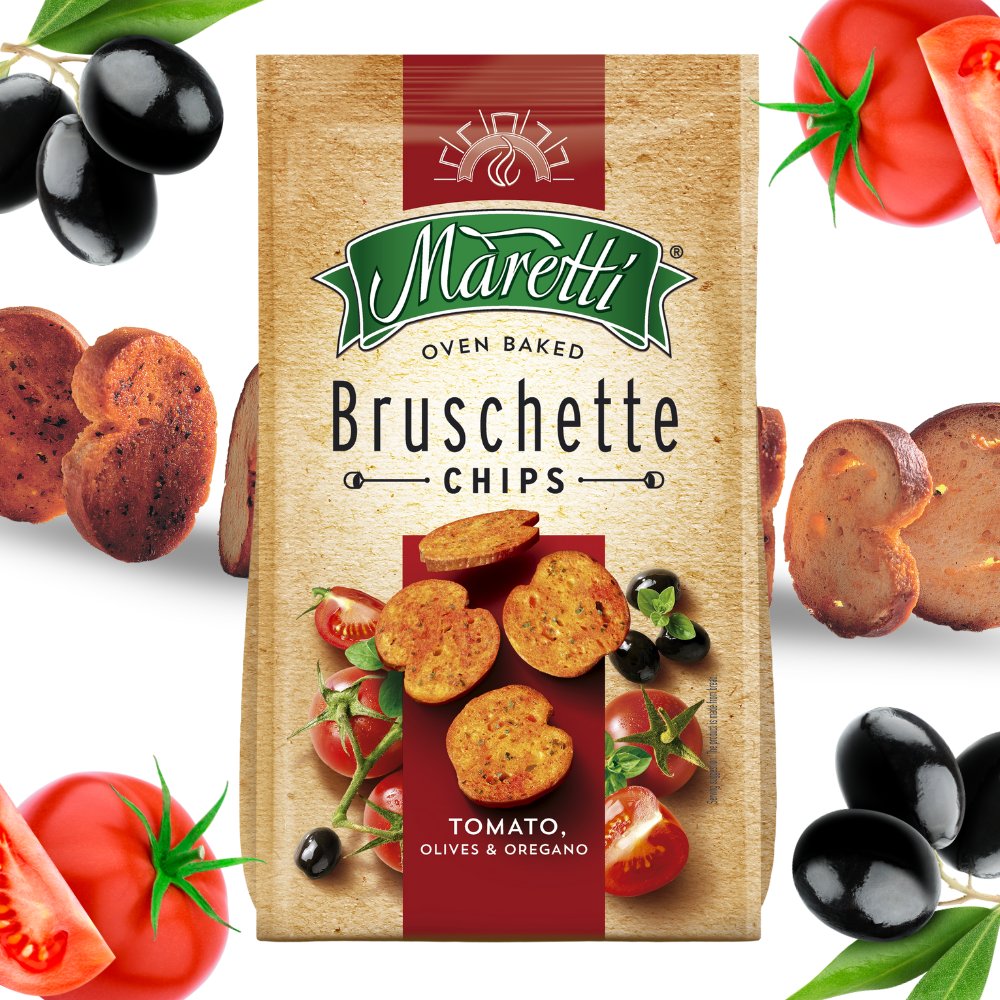 Maretti to nazwa lokalnej piekarni, która międzynarodową sławę zawdzięcza wypiekaniu legendarnych przekąsek. W piekarni Maretti pomysły zamieniane są w wyśmienite, tradycyjne włoskie przekąski – BRUSCHETTY. Teraz możesz spróbować nowych – Bruschette bites. To smakowite krążki pieczonego, chrupkiego pieczywa. Wyprodukowane zostały ze starannie wyselekcjonowanych składników. Chrupiące i smaczne przekąski wyśmienicie doprawione, dostępne są w różnych ciekawych smakach. Te intrygujące smaki zyskały nowe, stylowe opakowanie budzące w nas nieodpartą chęć sięgania wciąż po kolejną porcję mini krążków. Tak duża różnorodność jest gwarancją, że każdy na pewno znajdzie swój ulubiony smak.
