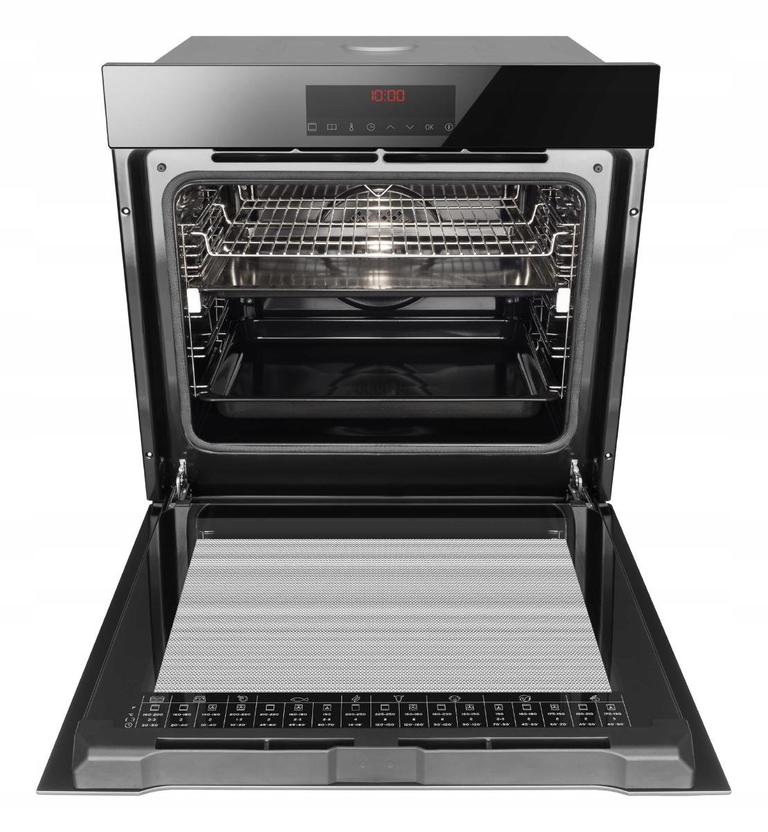 Przepisy znajdujące się na wewnętrznej stronie drzwi piekarnika to praktyczny poradnik w zasięgu ręki zawiera informacje o rodzaju potrawy, temperaturze, poziomie oraz czasie pieczenia.