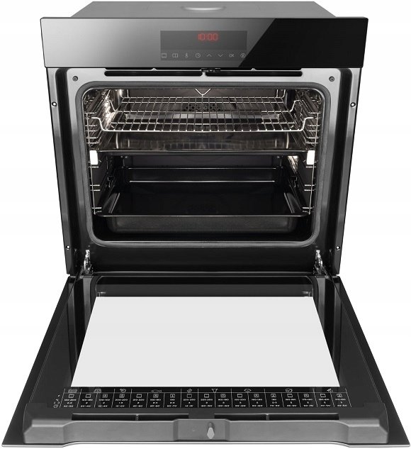 Przepisy znajdujące się na wewnętrznej stronie drzwi piekarnika to praktyczny poradnik w zasięgu ręki – zawiera informacje o rodzaju potrawy, temperaturze, poziomie oraz czasie pieczenia.