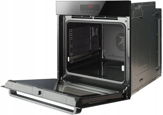 Piekarnik do zabudowy Amica z automatycznym otwieraniem drzwi.
