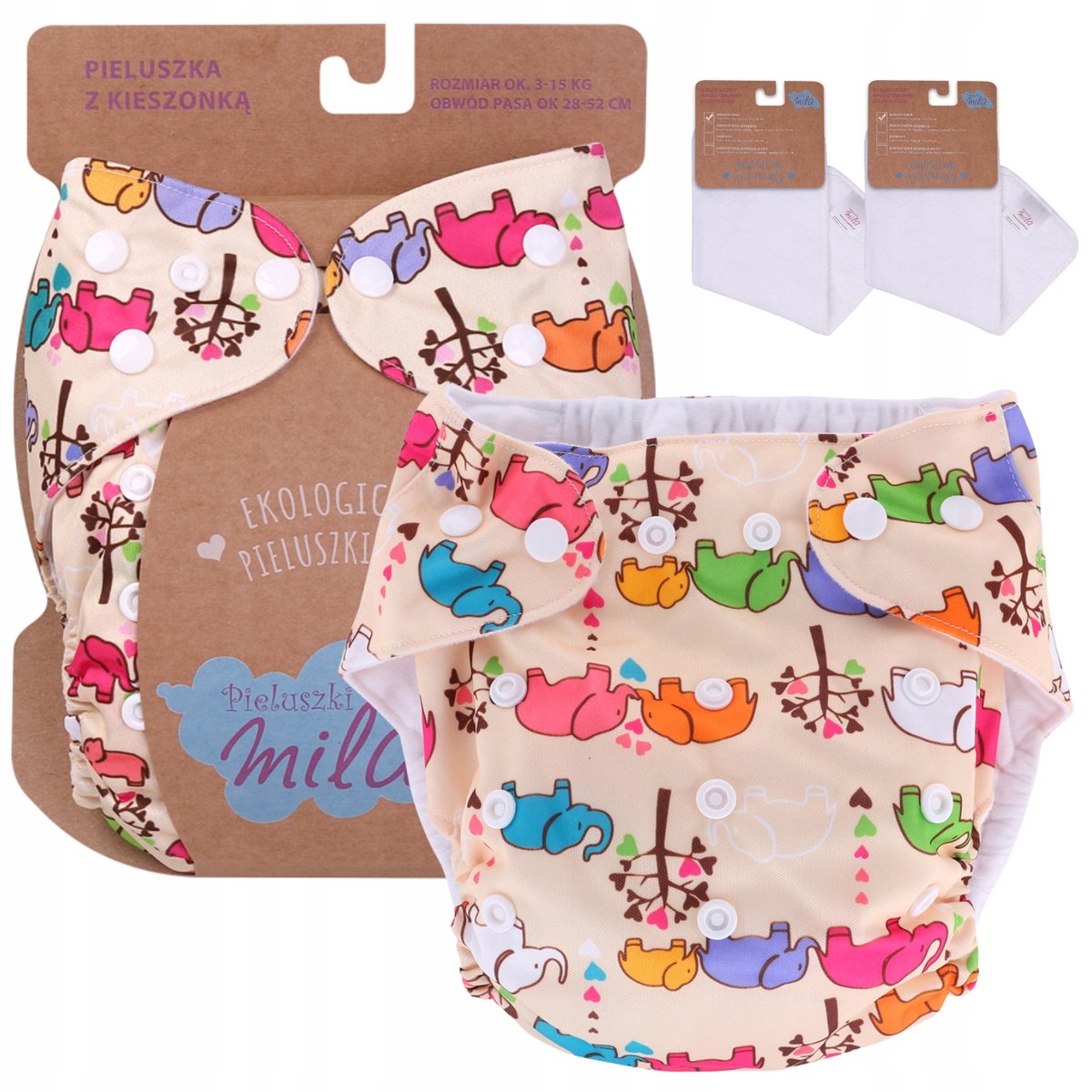 Pieluszka wielorazowa z KIESZONKA + 2 WKŁADY SłoniPieluszki posiadają kieszonkę, w której umieszczamy wkład chłonny. Warstwa mikropolarku oddziela pupę dziecka od wilgoci. Po zamoczeniu wkładu możemy