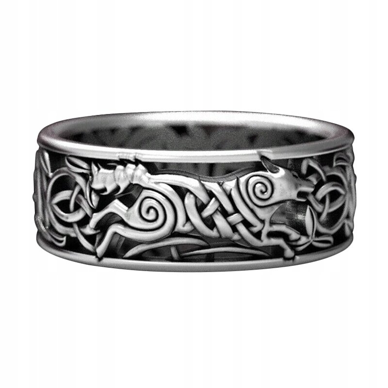 Pierścień, sygnet męskiStyl: wikingowie, runa nordyckie, mitologia nordycka, wilki odyna Freki i GeriMateriał: StalKolor: SREBRNYRozmiary USA: 8, 9, 10, 11, 12, 13Model: 148