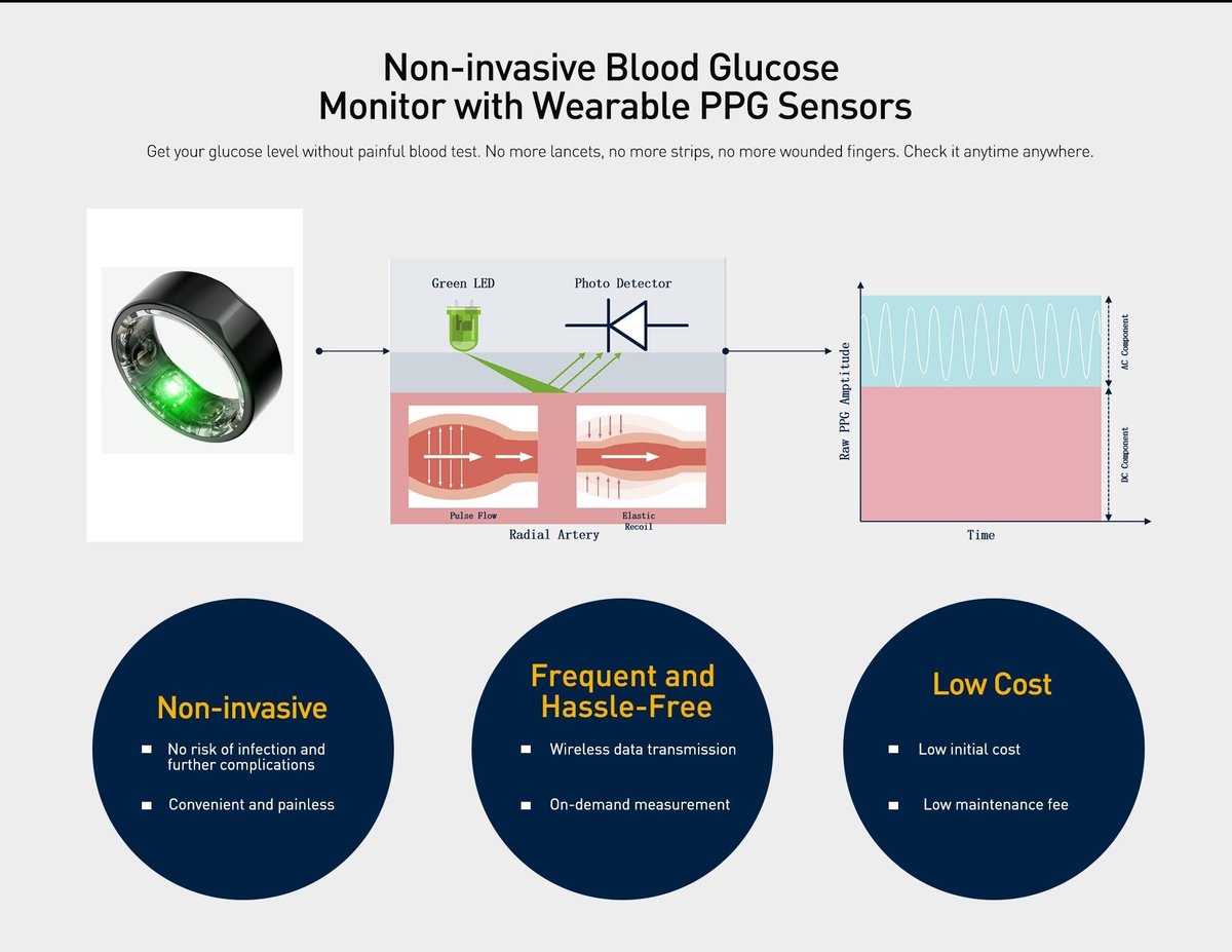 Najnowsza metoda pomiarowa na rynku, udokumentowana przeprowadzonymi badaniami na 96 osobach, pełne badania i raport przeprowadzone na sensorach użytych w pierścieniu w załączniku!