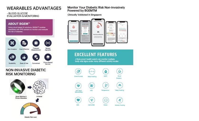 Glucoring z systemową analizą zapisu, monitorem glikemii, oceny ryzyka, temperatury ciała, natlenienia krwi, pulsu, stresu, HRV, aktywności ruchowej,
