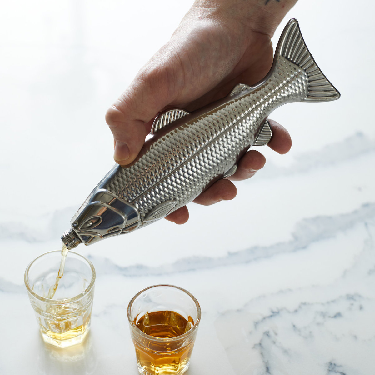 Trzymaj swój ulubiony napój pod ręką z pomocą tej zabawnej piersiówki w kształcie ryby.