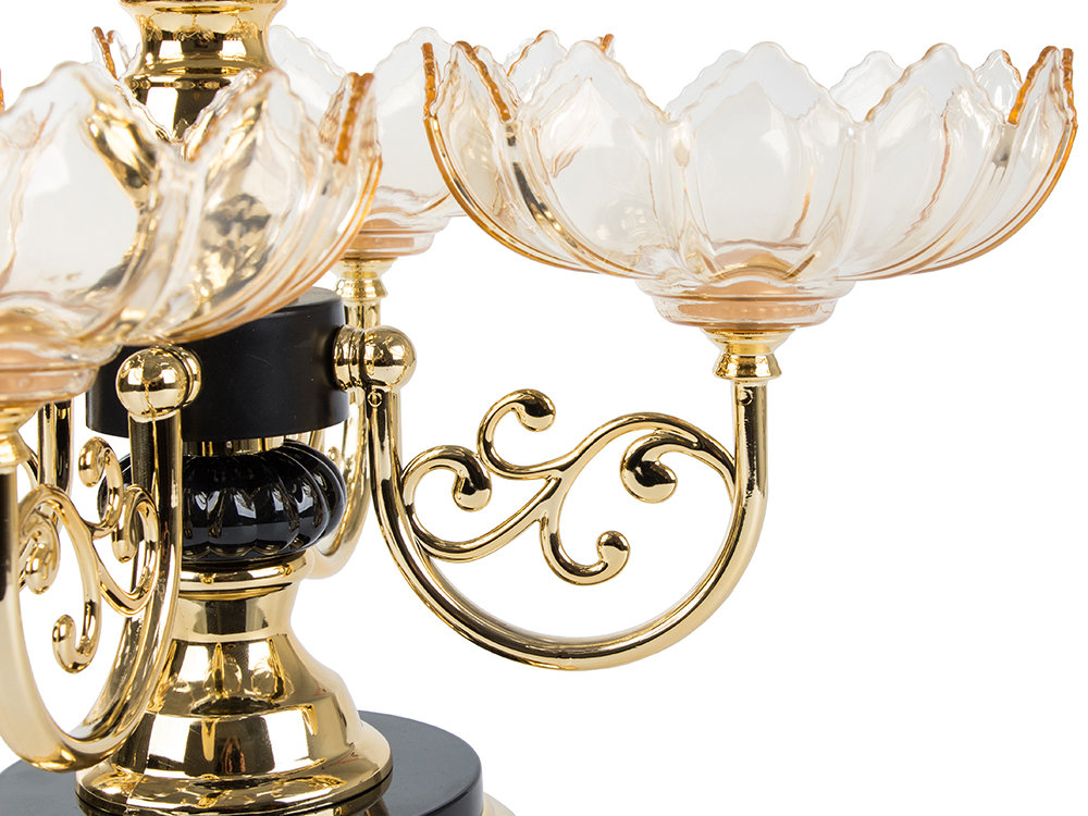 Nasza elegancka patera została wyposażona w pięć miseczek z których cztery są zamontowane na mechaniźmie obrotowym ułatwiającym serwowanie przekąsem naszym gościom.
